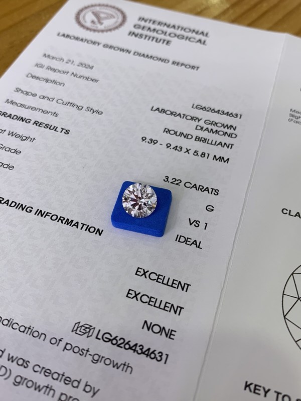 3.23CT G VS1 3EX CVD Labor gewachsener Diamant rund geschnitten IGI Zertifikat
